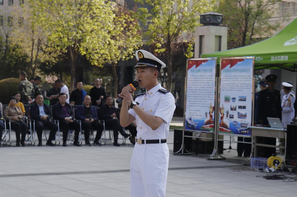 活动中,70名士官生诗朗诵《向着深蓝出发》,用声音演绎了海上长城的雄壮,吟诵了和平年代的安详;弹唱《光辉岁月》、萨克斯演奏《听海》,让学员们沉浸在人民海军的光辉岁月和对大海的向往中;《匍匐刀》表演强劲有力、气势恢宏,激起了学员们的豪迈情怀和从军意志;现场海军知识竞赛答题互动环节气氛热烈,学员们争抢答题,对海军知识掌握良好,把活动推向了高潮;最后活动在大家齐唱《强军战歌》中结束。