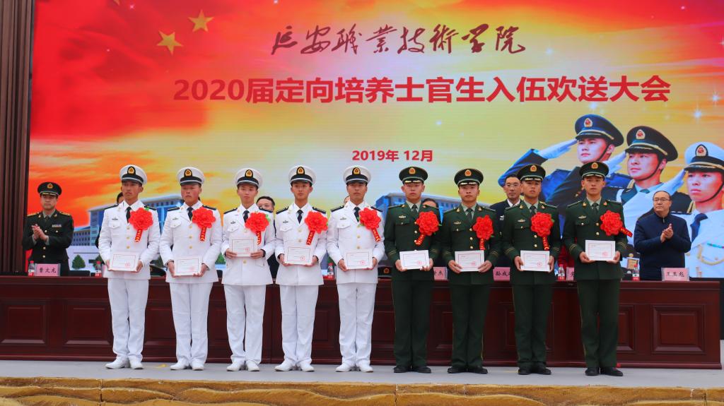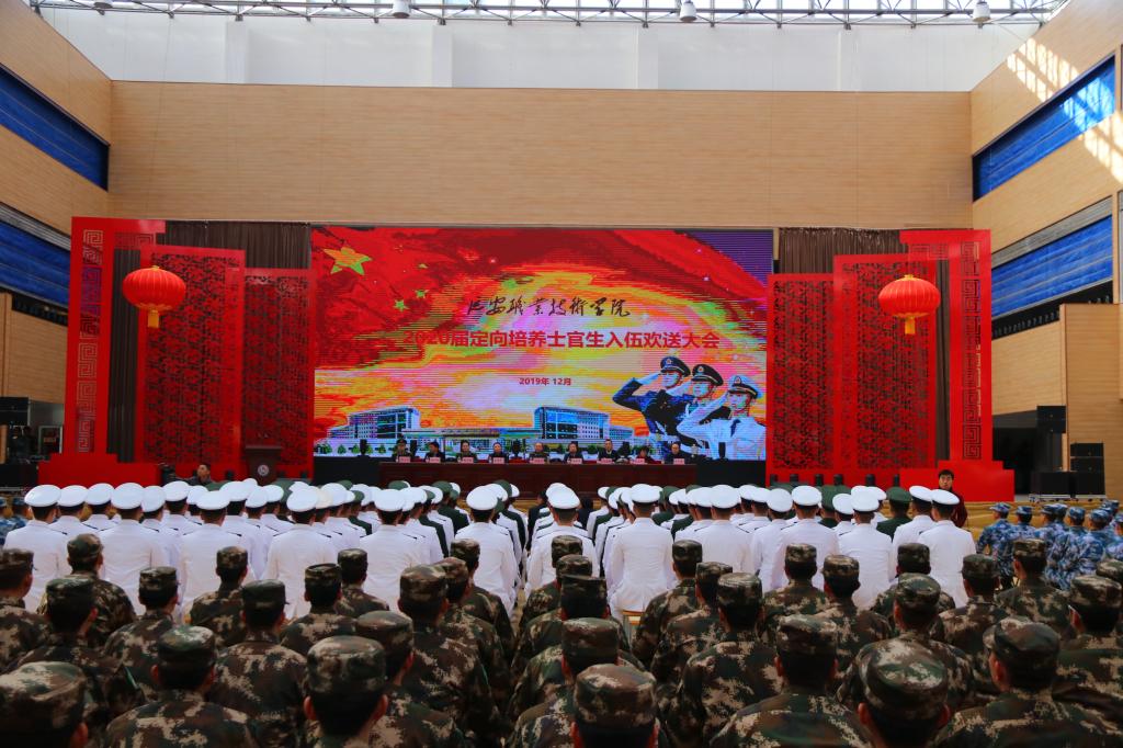 12月26日下午,学院在文体中心隆重举行2020届定向培养士官生入伍欢送大会。市委常委、延安军分区政委阎能利,学院党委书记呼世杰出席大会,院长高福华致欢送词,党委副书记党云萍主持会议,副院长景向伟,王玉彪,党委委员、工会主席王旭平与北部战区海军训练基地、武警延安支队、宝塔区人民武装部等单位代表出席。