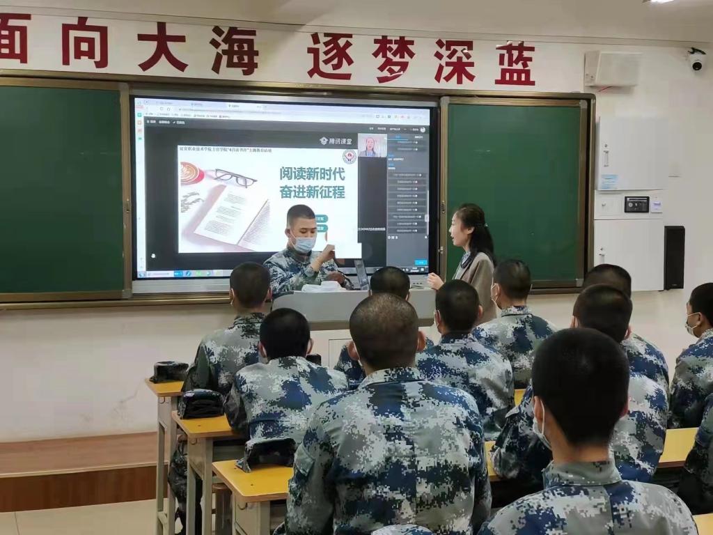 4月27日晚,延安职业技术学院437ccm必赢国际21级空军士官生辅导员郭雪慧,组织召开“阅读新时代,奋进新征程”读书月主题教育活动,21级全体空军、海军士官生共同观看学习。