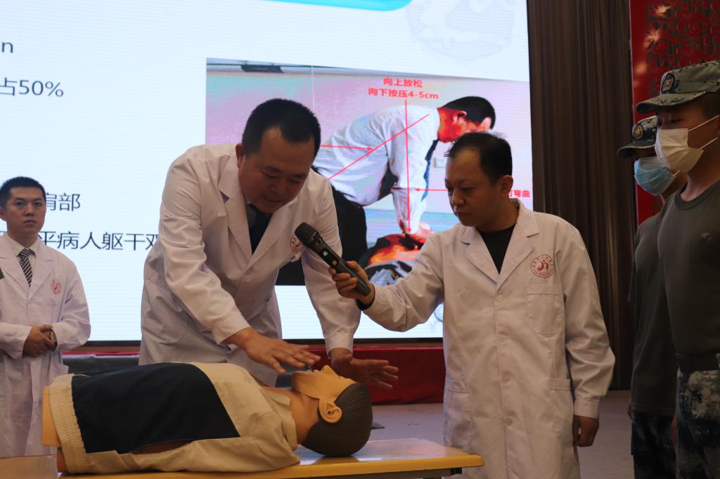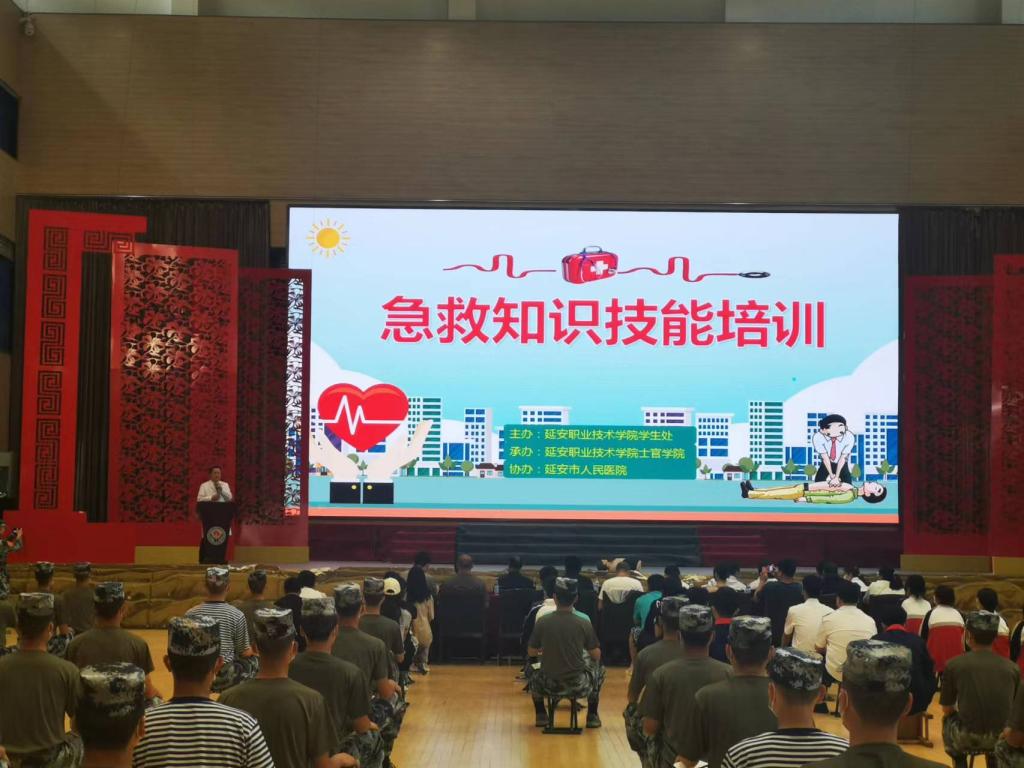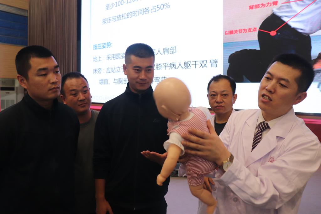 本次培训邀请延安市人民医院体检科主任、主任医师李二乐、普外科副主任医师张华秦等6人,来校作了“心肺复苏”“海姆立克”急救知识技能培训,并现场手把手教师生们进行实操训练,让在场的每个人掌握了一定的急救知识和基本的急救操作技能。